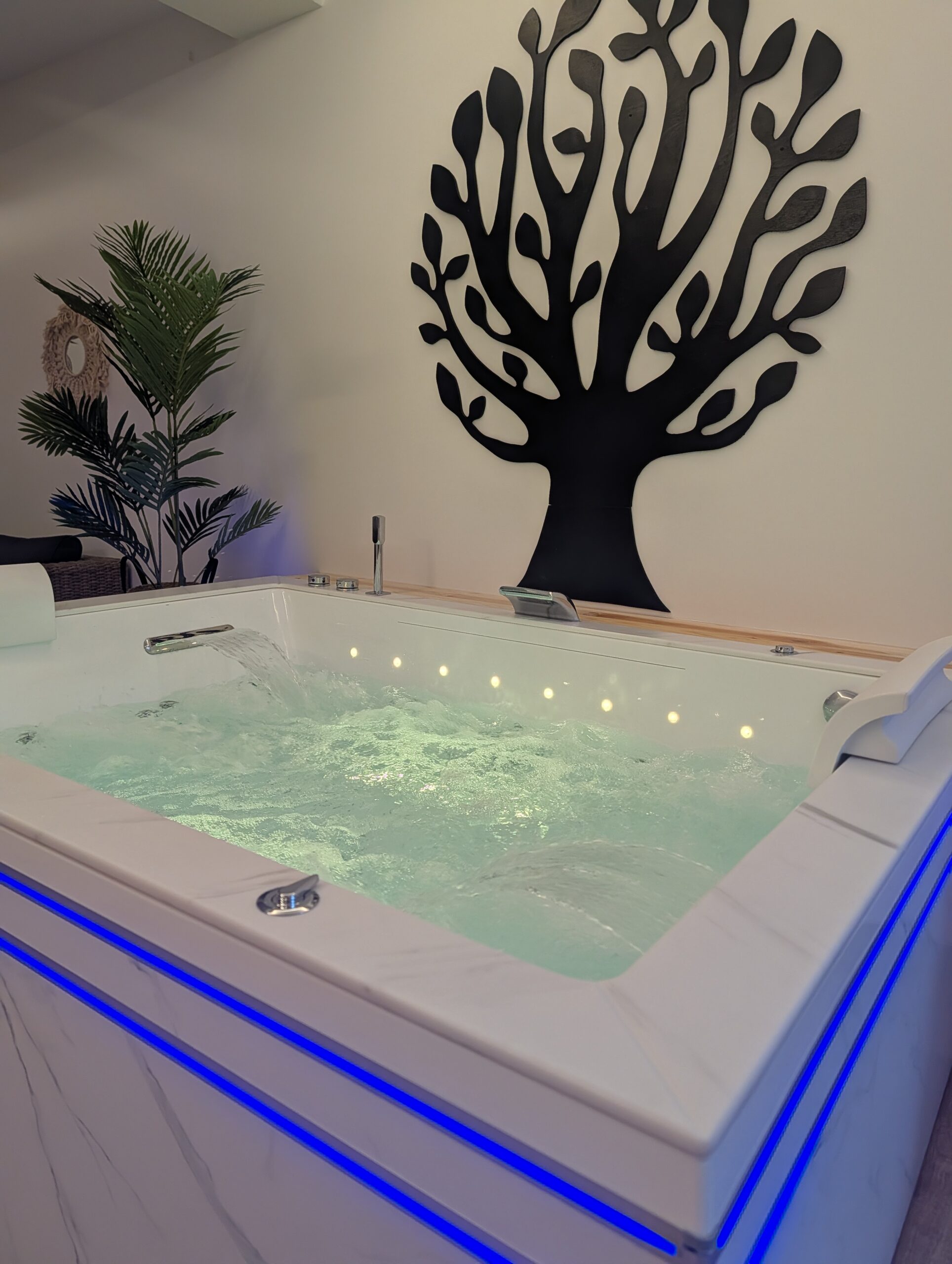 Espace privatif de 40m2 avec partie détente , boissons, coin jeux bébé, douche et terrasse extérieur. C’est une activité idéale et originale à partager ensemble pour renforcer les liens familiaux et profiter des bienfaits de l’hydrothérapie :